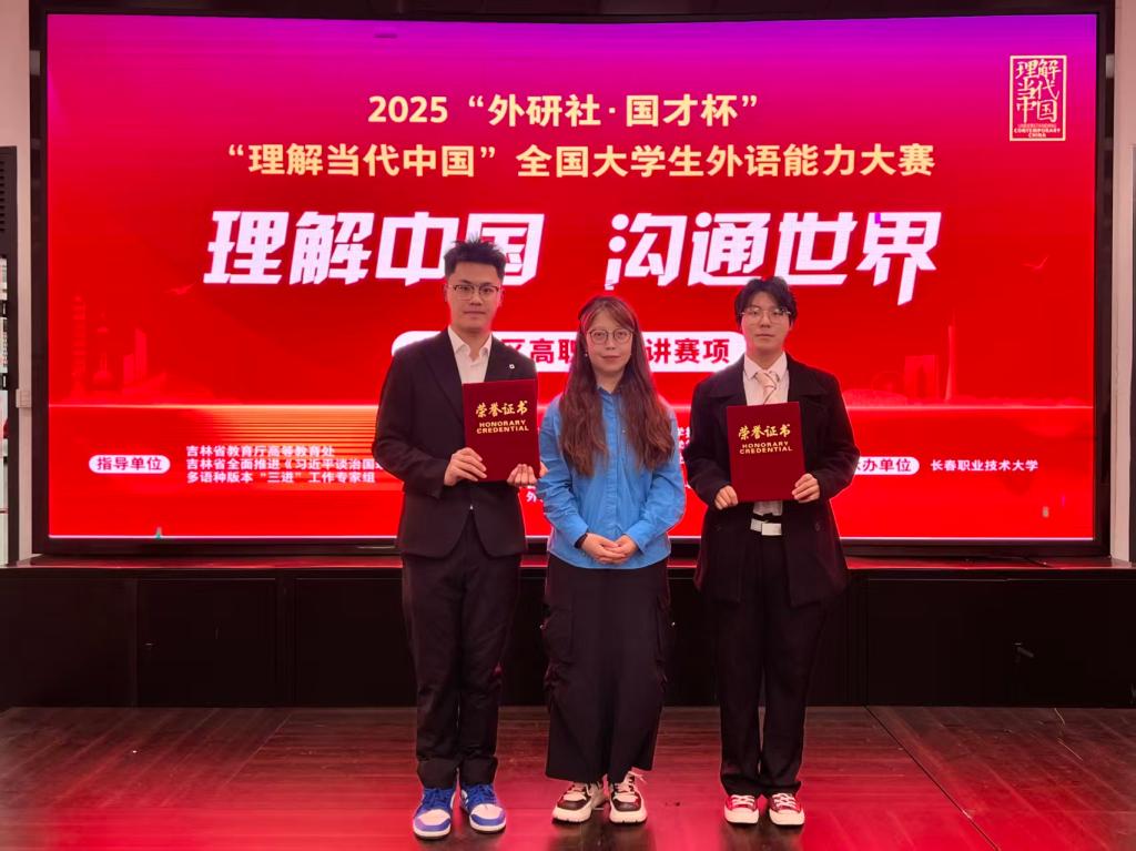 2025年10月25日和26日,2025“外研社•国才杯”“理解当代中国”外语能力大赛(吉林省高职组)演讲和写作赛项在我校举办。我校共获得演讲比赛一等奖1项、二等奖1项,写作大赛二等奖1项三等奖2项。