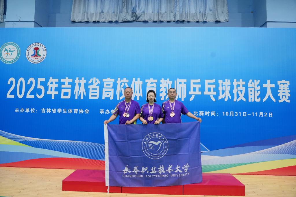 2025年10月31日—11月1日,由吉林省学生体育协会举办的吉林省高校体育教师乒乓球技能大赛在吉林铁道职业技术大学圆满落下帷幕。我校代表队表现优异,获得了1金1银2铜的好成绩。