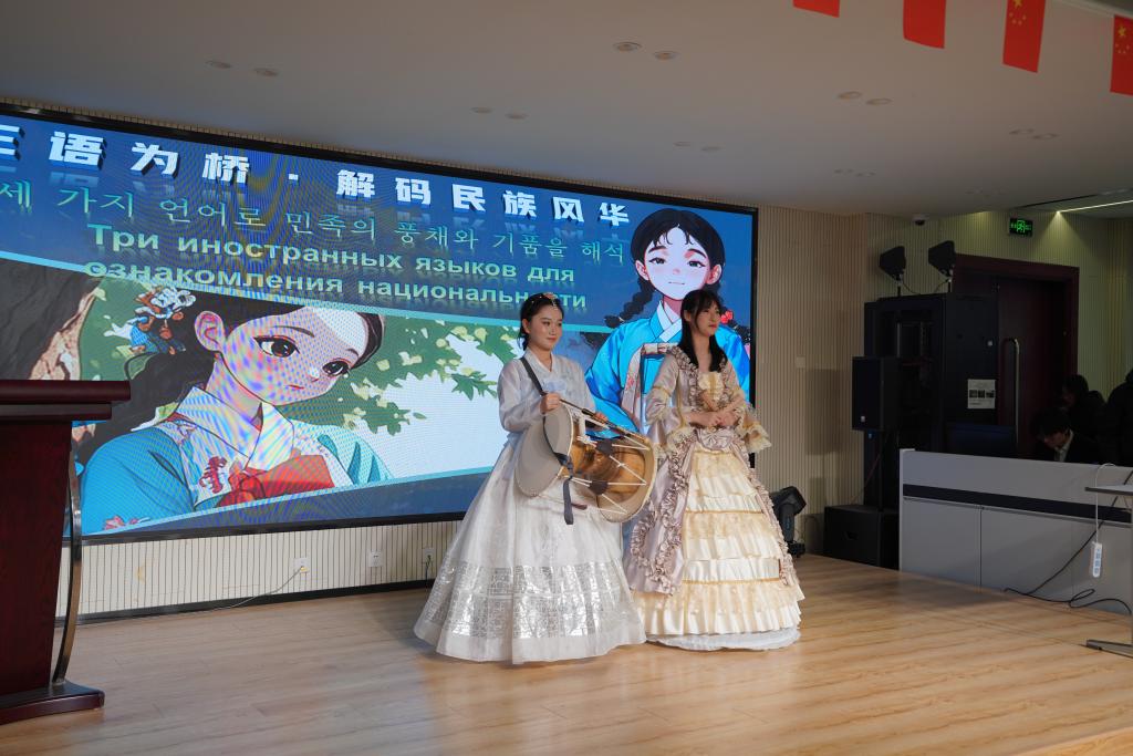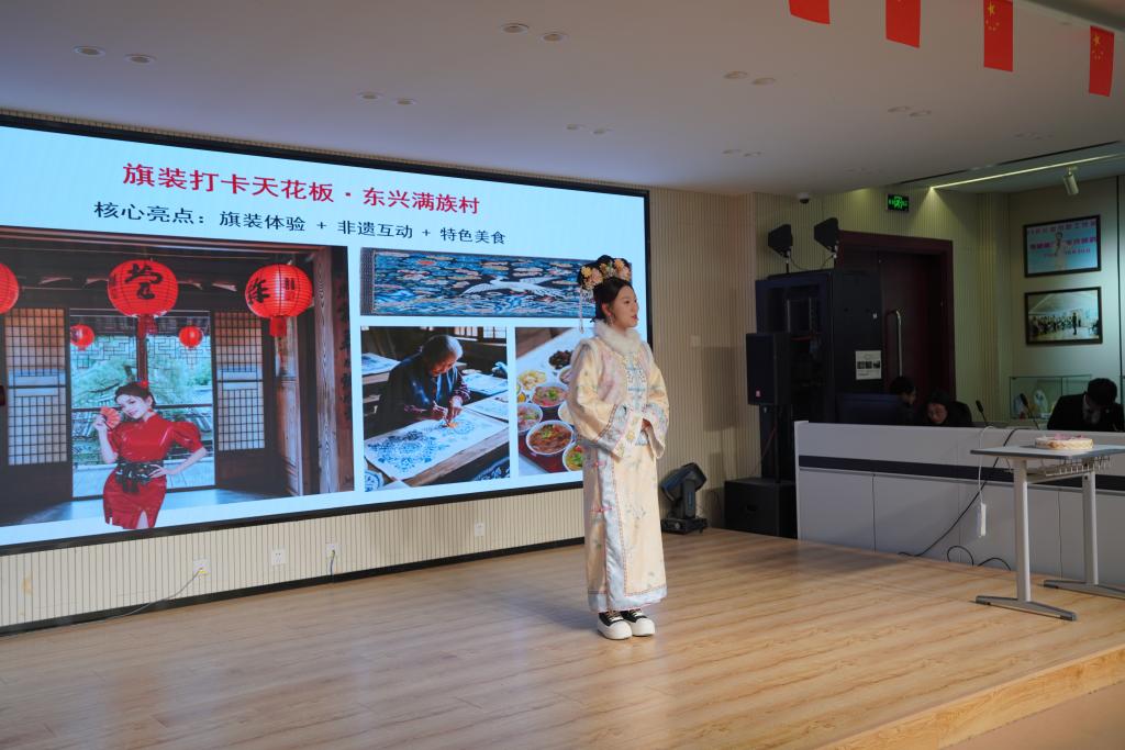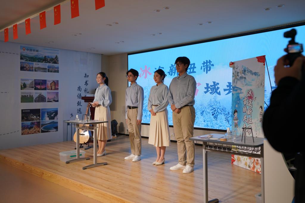 学院学生带来三组专业技能展示。一带一路金砖国家技能大赛全国总决赛一等奖作品《吉林冰雪研学课程数字化解决方案》、学院“多彩文旅・未来之星”技能大赛优秀选手的吉林文旅推介以及世界职业院校技能大赛银牌作品《一汽文旅研学课程设计》依次亮相。同学们以扎实的专业知识、娴熟的实践技能和饱满的精神状态,充分展现了学院产教融合的育人成效。