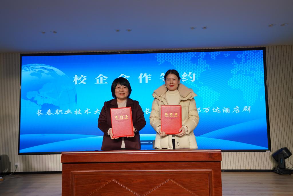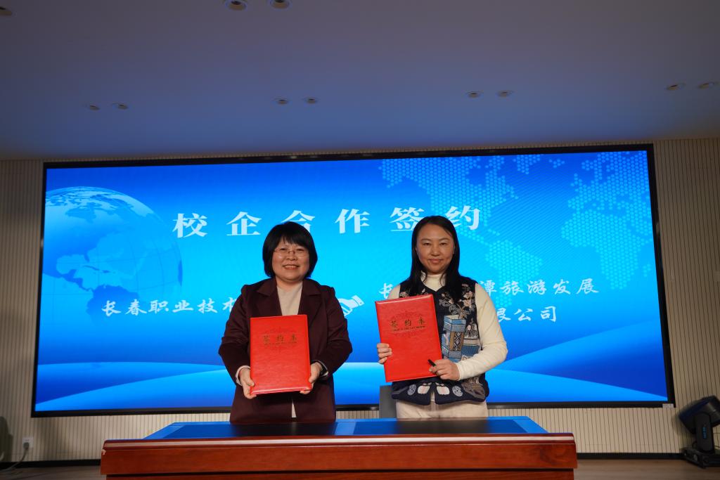 申延子院长代表学院,先后与吉林省中庆旅游文化有限公司、长春净月潭旅游发展集团有限公司、中旅松花湖度假区、长春万达滑雪场、长春万达影都酒店群等五家企业签署合作协议。校企双方将在人才输送、课程联合开发、实训基地共建、冰雪及研学订单班组建、双师型师资队伍建设等多元领域开展深度合作,搭建起“教”与“产”、“学”与“用”的坚实桥梁,凝聚校企协同育人的责任与共识。