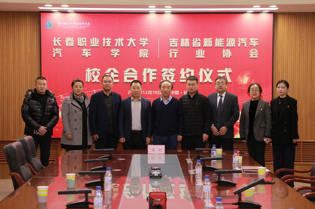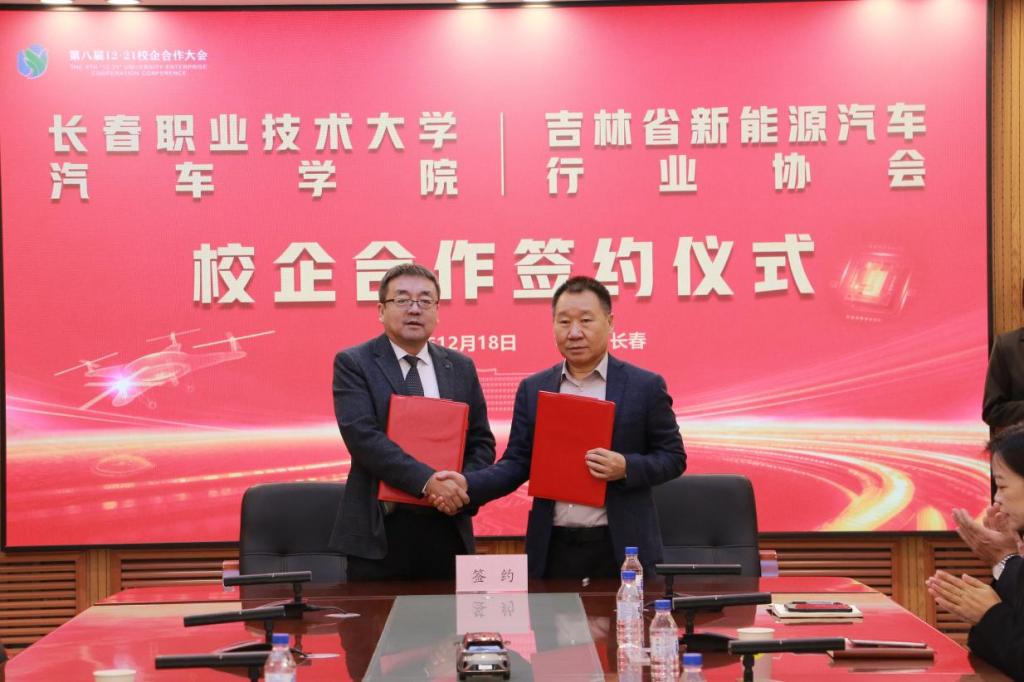 学校副校长李明革、组织部长么占东,汽车学院院长孙海波、党总支书记于杰、副院长金丹及学院中层干部、部分专业教师代表齐聚一堂,与摩捷智行有限责任公司、吉林羽沣汽车装备技术有限公司等5家行业标杆企业及吉林省新能源汽车协会,围绕人才定向培养、课程体系改革、实习实训基地共建、行业技能竞赛联合举办、科研项目协同攻关、“一带一路”服务赋能、社会服务拓展及教师企业实践锻炼等多个关键领域,达成深度合作共识并正式签订合作协议。