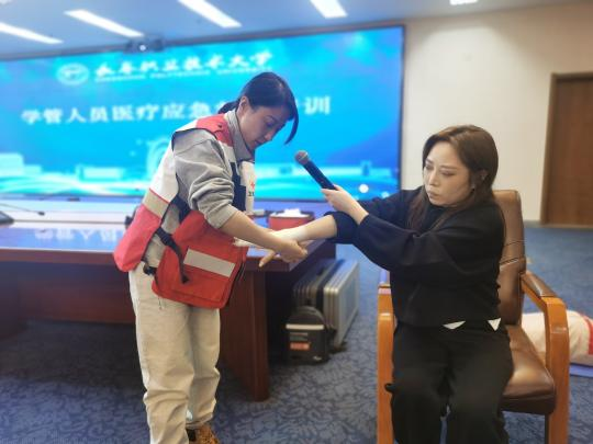 学校总务处卫生防疫保健科程春雪老师以实战需求为导向,开展医疗应急救护专题培训。培训聚焦高校高频应急场景,系统讲解心肺复苏(CPR+AED)操作规范、海姆立克急救法原理及创伤止血包扎技巧,通过急救模拟人实操演练、辅导员现场示范等形式,确保参训人员“听得懂、学得会、用得上”,切实夯实校园应急救护的实操根基。