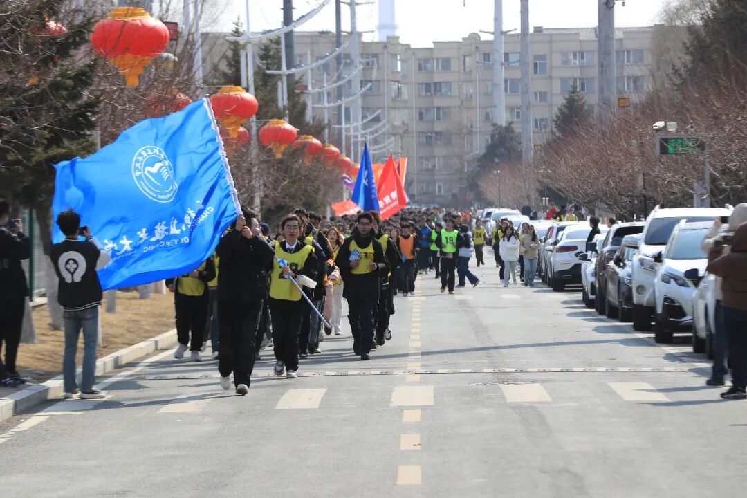当天,活动现场气氛热烈。随着一声指令下达,各学院学生组成的跑步队伍整齐有序地出发。他们身着轻便的运动装,手中挥舞着院旗,沿着既定路线奋力奔跑。队伍行进间,宛如一条灵动的彩带,穿梭在校园内外,成为一道引人注目的风景线,吸引了不少师生驻足观看、加油助威。