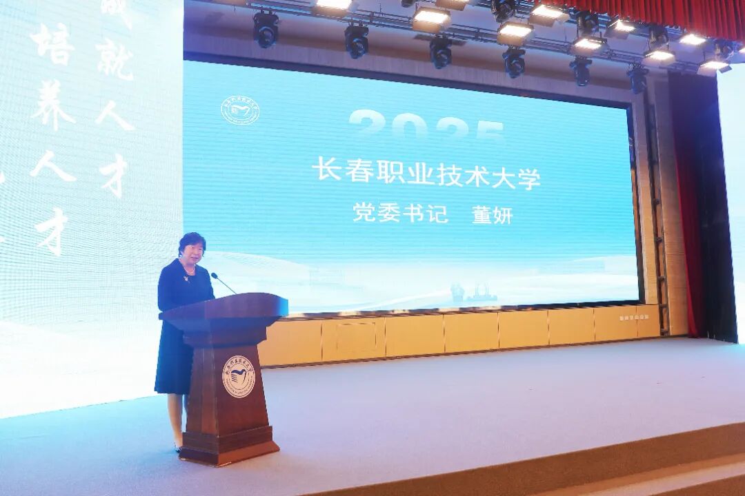 吴波表示,长春职业技术大学作为区域内培养高素质技术技能人才的重要阵地,始终紧扣长春产业发展需求,在专业设置、实践教学、校企合作等方面精准发力,培养出的大批学子不仅专业素养扎实、实践能力突出,更具备扎根行业、务实奋进的优良品质,许多毕业生已成为长春重点产业领域的骨干力量,为地方经济发展作出了重要贡献。他结合长春市出台的大学生留长就业创业优惠政策,多维度推介长春的发展环境、产业环境、创新环境、人才环境、生活环境,展示了“多面”长春的不同精彩。最后,吴波向我校毕业生发出诚挚邀请,希望长春职业技术大学的莘莘学子能够延续学校优良学风与实干精神,把目光投向长春、把理想安在长春、把奋斗写在长春,与这座充满机遇的城市双向奔赴、共同成长,在共建共享中实现人生价值与城市发展的“双赢未来”!